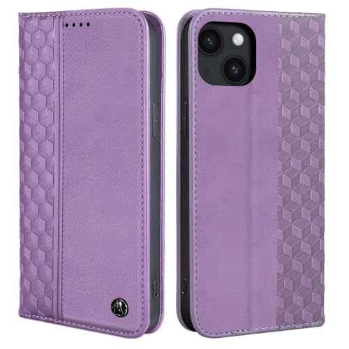 SRISHP Coque pour iPhone 15, Housse Etui Portefeuille Cuir PU Multifonction, Magnétique Étui de Protection Compatible avec iPhone 15, Violet