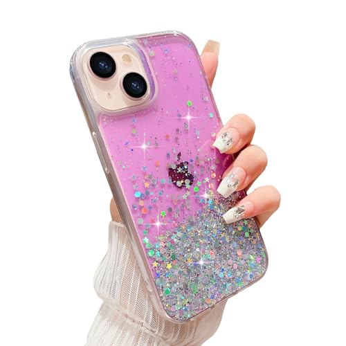 LCHULLE Coque Compatible avec iPhone 15 Femme Fille Paillettes Silicone Antichohc Transparente Brilliante Glitter Case Coque pour iPhone 15 Violet