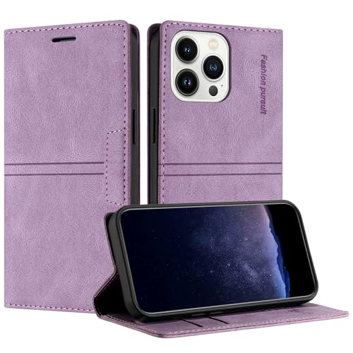 TOUCASA Coque pour iPhone 15 Pro (6,1 Pouce), Housse en Cuir PU Portefeuille Etui, TPU Fonction Support [Fentes pour Cartes] Anti-Choc Folio Magnetique Compatible avec iPhone 15 Pro (Violet)