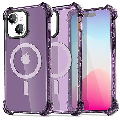 AICase Bounce Coque Compatible avec iphone 15 Plus Transparent Violet Compatible avec MagSafe, Antichoc [Protection Militaire Contre Les Chutes de 21,3 Pieds] Anti-Rayures Magnétique Coque