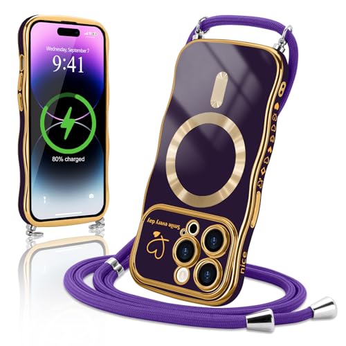 Lafunda Coque pour iPhone 15 Pro Coque Compatible avec Magsafe Motif Cordon et Collier Cordage Lanyard Case pour iPhone 15 Pro Violet