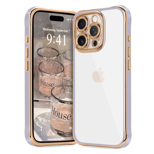 Wirvyuer Coque Compatible avec iPhone 15 Pro Coque Motif Floral Bord Forme Ondulé Bouclée avec Protection Caméra Fille Galvanisé Étui Silicone Case pour iPhone 15 Pro Violet Foncé