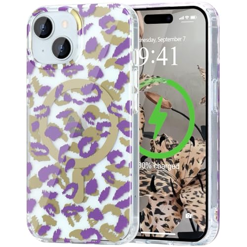 Wirvyuer Coque magnétique pour iPhone 15 Housse avec Motif Floral [Compatible avec MagSafe] Étui Antichoc en Silicone Coque pour Femmes Filles Cute Case pour iPhone 15 Violet