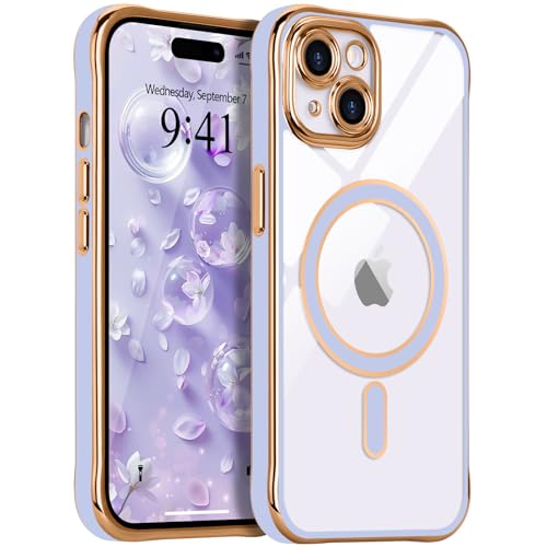 LCHULLE Magnétique pour iPhone 15 Plus Coque Transparente [Compatible avec Magsafe] Protection pour Appareil Photo Housse Antichoc galvanique Coque Silicone pour iPhone 15 Plus Violet Clair