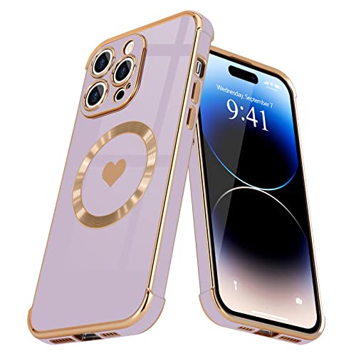 L-FADNUT Coque pour iPhone 15 Pro Coque Compatible avec MagSafe Motif Cœur Galvanisé Antichoc Résistante Silicone Étui pour iPhone 15 Pro Violet