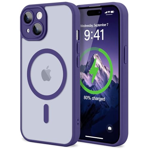 LAPOPNUT Coque Compatible avec iPhone 15 Coque Compatible avec MagSafe en Silicone TPU Résistant aux Chocs et aux Rayures Case pour iPhone 15 Violet Foncé