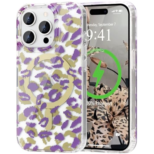 LAPOPNUT Coque Compatible avec iPhone 15 Pro Coque de Protection en Silicone Souple Motif Léopard Antichoc Femme Coque pour iPhone 15 Pro Violet