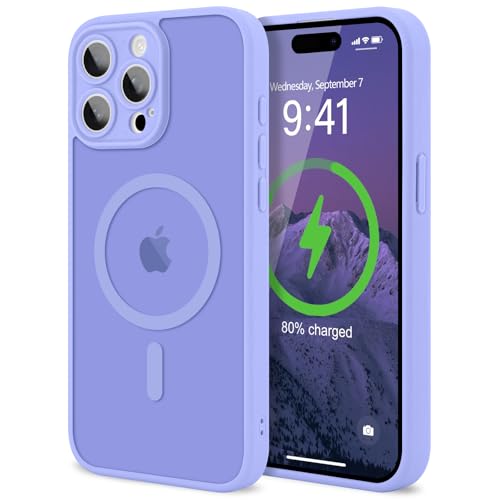 LAPOPNUT Coque Compatible avec iPhone 15 Pro Coque Compatible avec MagSafe en Silicone TPU Résistant aux Chocs et aux Rayures Case pour iPhone 15 Pro Violet Pâle