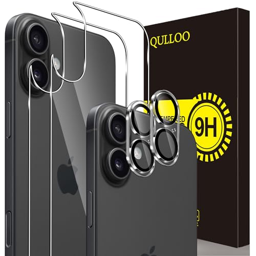 QULLOO Arrière Verre Trempé pour iPhone 16 [2 Pièces] + Caméra Protecteur [2 pièces], 9H Dureté Film Protection Arrière Anti-Rayures Protecteur Écran pour iphone 16