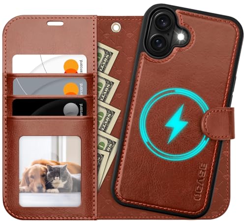 OCASE Coque pour iPhone 16 Amovible 2 en 1 Etui Portefeuille iPhone 16, RFID Blocage, Fentes pour Cartes, Antichoc TPU Housse Cuir Protection pour iPhone 16 (6,1 Pouces) - Brun Foncé
