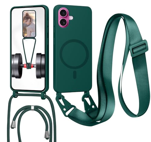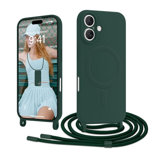 Ethanger Coque Magnétique pour iPhone 17 avec Cordon de Collier Réglable Housse de Protection Compatible avec MagSafe en Silicone TPU Etui Case Ultra Fine pour iPhone 17 Vert