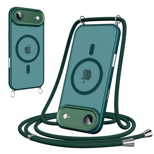 Woijrly Coque Magnétique pour iPhone Air avec Cordon 6.5",[Compatible avec MagSafe] Etui Translucide Mat Arrière Antichoc Réglable Portable Lanyard Case Protection iPhone 17 Air, Vert