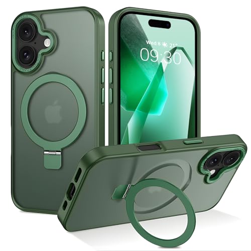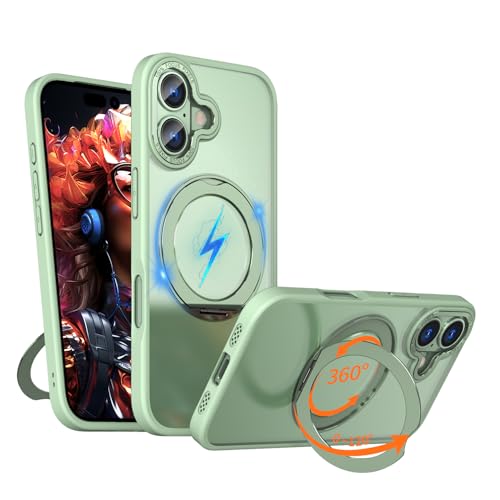 ROUMAYMAY Coque Magnétique pour iPhone 17 avec Support Pliable Bague Anneau Métallique [Compatible avec Magsafe], Mat Fine Translucent Coque de Téléphone pour iPhone 17, Vert