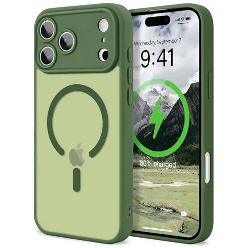 KPPIT Coque pour iPhone 17 Pro Pouces Compatible avec MagSafe, Anti-jaunissement et Anti-Traces de Doigts, Coque de Protection Antichoc, arrière Mat translucide, Coque pour iPhone 17 Pro, Vert foncé