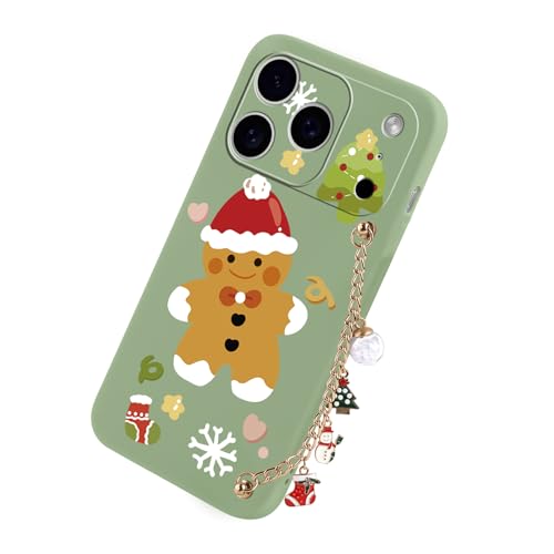 Yoedge Noël Coque pour iPhone 17 Pro 6,3" avec Cordon Chaîne de Poignet, Mignon Etui avec Animé Motif Bonhomme en d'épice, Souple TPU Silicone Antichoc Christmas Case Housse pour iPhone 17 Pro, Vert