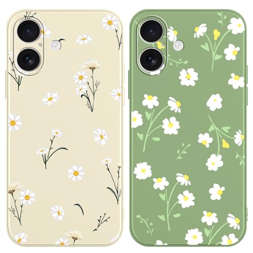LEECG Housse de pour iphone 17 Coque Mince en Silicone Souple Anti Rayures avec Doublure en Microfibre Phone Coque pour iphone 17, Daisy Vert