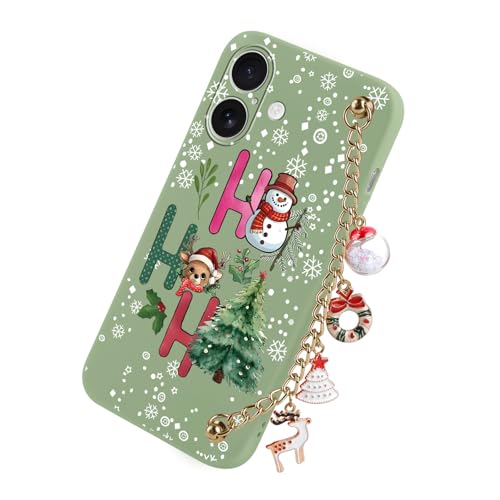 Yoedge Noël Coque pour iPhone 17 6,3" avec Cordon Chaîne de Poignet, Mignon Etui avec Animé Motif Wapiti, Souple TPU Silicone Antichoc Protection Christmas Case Housse pour iPhone 17, Vert