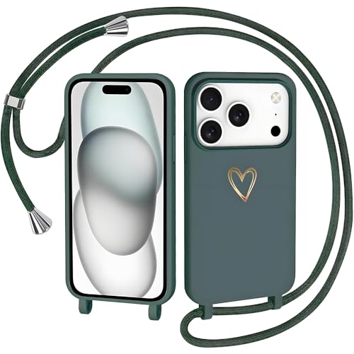 CaseLover Coque avec Cordon Compatible iPhone 17 Pro 6.3", Coque de Cellulaire Corde Silicone Étui en Motif Coeur avec Réglable Collier Téléphone Chaîne Lanyard Housse pour iPhone 17 Pro, Vert