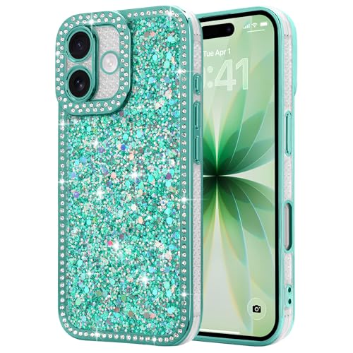 Lafunda Coque Compatible avec iPhone 17 Paillettes Bling Pailletée Antichoc Cristal Étui Brillant pour Femmes et Filles Housse de Téléphone pour iPhone 17 Vert