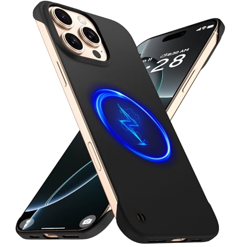 GRECAZO Magnetic Slim Case Fit for iPhone 16 Pro Phone Case 6.3"(2024) Ultra-Thin Lightweight Durable Frameless Matte Hard for MagSafe Cover Case with Pull Ring Shockproof Non Slip Rope-Black