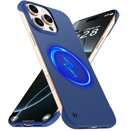 GRECAZO Magnetic Slim Case Fit for iPhone 16 Pro Phone Case 6.3"(2024) Ultra-Thin Lightweight Durable Frameless Matte Hard for MagSafe Cover Case with Pull Ring Shockproof Non Slip Rope-Blue