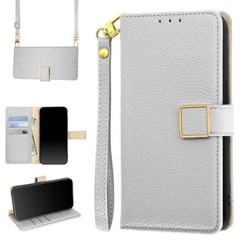 WOWUDI Étui Portefeuille pour iPhone 6 Plus /6S,Coque Femme élégante avec Fermeture magnétique dorée,bandoulière,dragonne,rangements pour Cartes et Fonction Support -Argent
