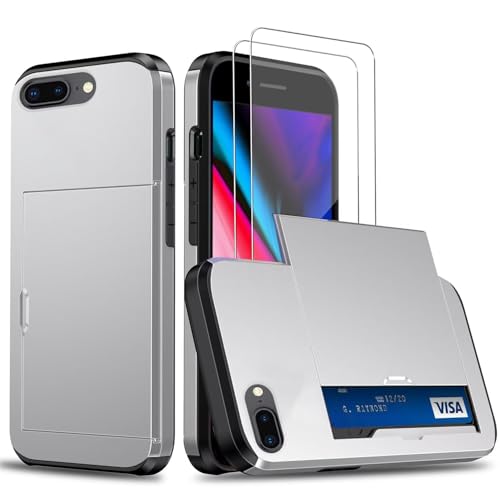 Coque Portefeuille pour iPhone 6s Plus/6 Plus avec 2 Verre Trempé Anti,Étui de Protection Téléphone Double Couche Antichoc,Fente Cachée Coulissante,avec Porte-Cartes Housse -Couleur Argent