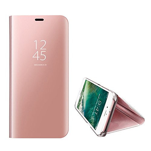 IMEIKONST iPhone 8+ Etui Bookstyle Miroir Clair Vue Makeup Smart View Standing Full Body Protecteur Housse Coque Etui à Rabat Coque pour iPhone 8 Plus / 7 Plus Flip Mirror: Rose Gold QH