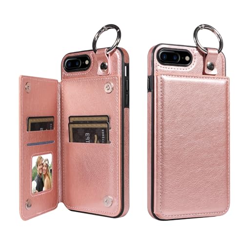 Étui de protection SATURCASE pour Apple iPhone 7 Plus/8 Plus en cuir synthétique avec fermeture magnétique et emplacements pour cartes Étui vertical rose gold