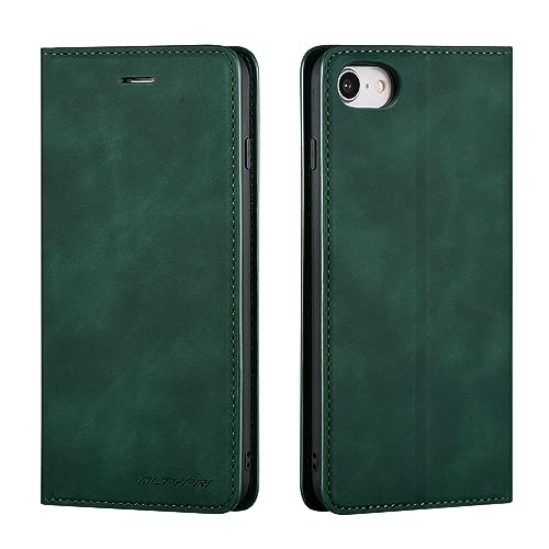 QLTYPRI Coque pour iPhone 7/iPhone 8/iPhone SE 2020/iPhone SE 2020 5G, Housse en Cuir Premium PU Portefeuille Etui, [Fentes pour Cartes] [Fermoir Magnétique] [Stand Fonction] Flip Coque - Vert