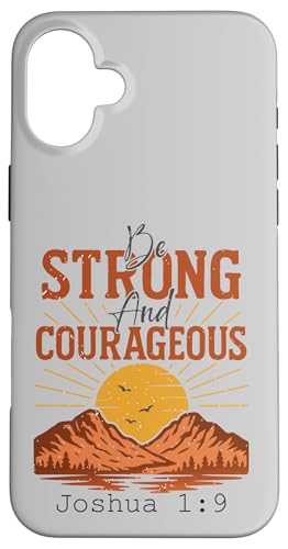 Sois Fort et Courageux — Joshua 1:9 Retro Mountain Coque pour iPhone 16 Plus