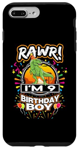 Rawr I'm 9 9th Birthday TRex Dinosaur 9 Years Old for Boy Coque pour iPhone 7 Plus/8 Plus