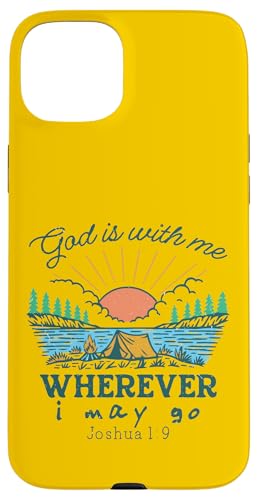 Dieu est avec Moi où Que j'aille — Joshua 1:9 Retro Camping Coque pour iPhone 15 Plus