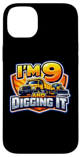 Camion de Construction 9e Anniversaire I'm 9 and Digging It Boys Coque pour iPhone 15 Plus