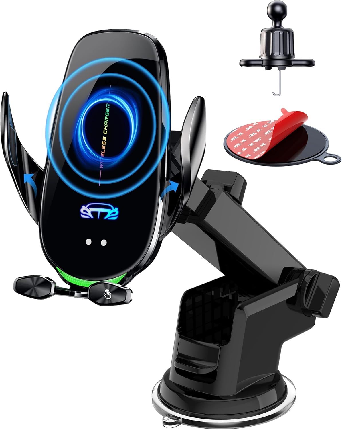 ISEYOU Support Telephone Voiture Induction, 15W [Serrage Automatique] Chargeur Induction Voiture sans Fil avec QC 3.0 Chargeur Adaptateur Rapide Compatible avec iPhone 17 16 15 Pro Max, Galaxy S25/S24
