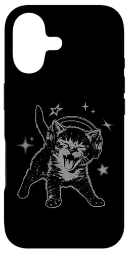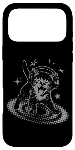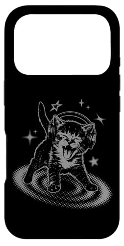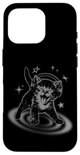 Y2K Cat Headphones Stars Silly 90s Grunge Vintage Graphic Coque pour iPhone 16 Pro