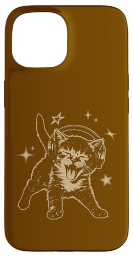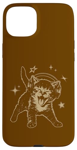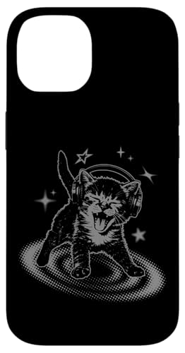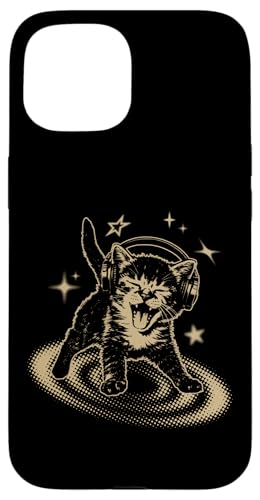 Cat Headphones Stars Cute Grunge 90s Y2K Vintage Graphic Coque pour iPhone 15