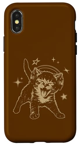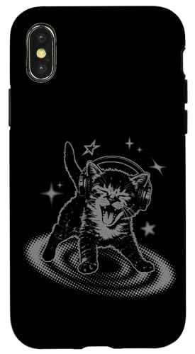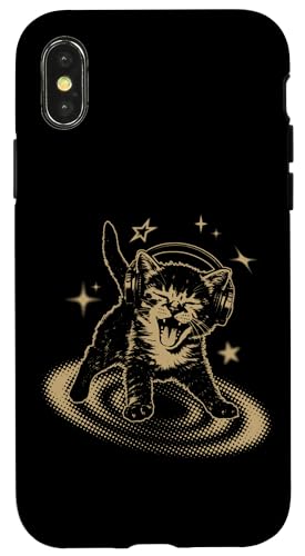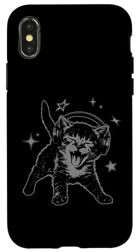 Cat Headphones Stars Silly 90s Grunge Y2K Vintage Graphic Coque pour iPhone X/XS