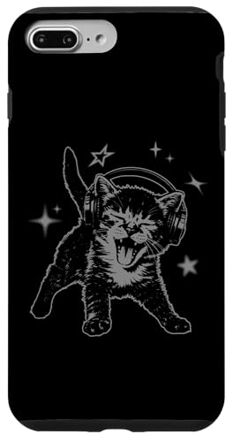 Cat Headphones Stars Silly 90s Grunge Y2K Vintage Graphic Coque pour iPhone 7 Plus/8 Plus