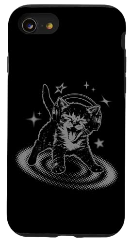 Y2K Cat Headphones Stars Silly 90s Grunge Vintage Graphic Coque pour iPhone SE (2020) / 7/8