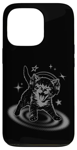 Cat Headphones Stars Silly 90s Grunge Y2K Vintage Graphic Coque pour iPhone 13 Pro