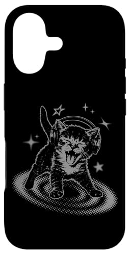 Y2K Cat Headphones Stars Silly 90s Grunge Vintage Graphic Coque pour iPhone 17