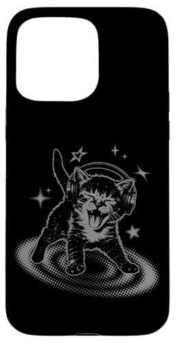 Y2K Cat Headphones Stars Silly 90s Grunge Vintage Graphic Coque pour iPhone 15 Pro Max