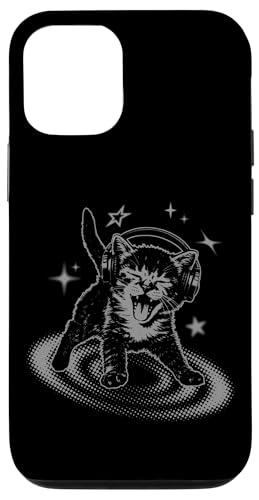 Y2K Cat Headphones Stars Silly 90s Grunge Vintage Graphic Coque pour iPhone 12/12 Pro