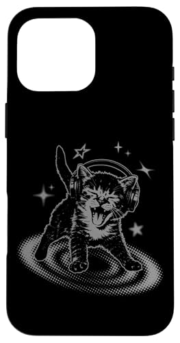 Y2K Cat Headphones Stars Silly 90s Grunge Vintage Graphic Coque pour iPhone 16 Pro Max