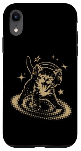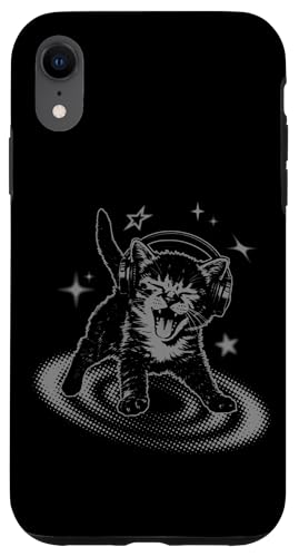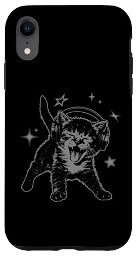 Cat Headphones Stars Silly 90s Grunge Y2K Vintage Graphic Coque pour iPhone XR