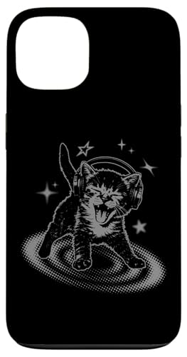 Y2K Cat Headphones Stars Silly 90s Grunge Vintage Graphic Coque pour iPhone 13