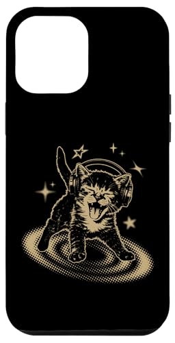 90s Y2K Cat Headphones Stars Silly Grunge Vintage Graphic Coque pour iPhone 12 Pro Max