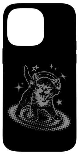Y2K Cat Headphones Stars Silly 90s Grunge Vintage Graphic Coque pour iPhone 14 Pro Max