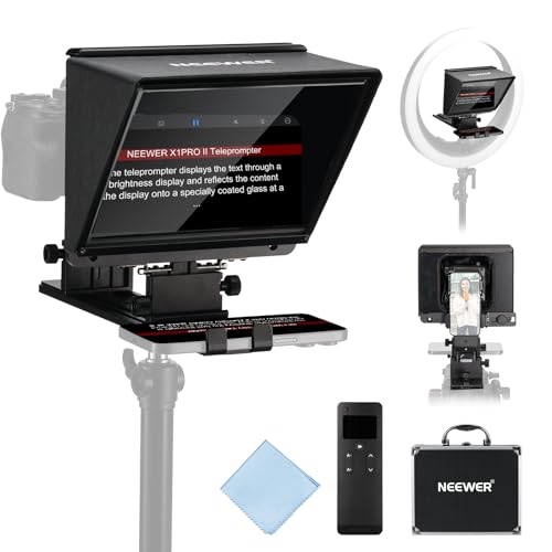 NEEWER X1 Pro II Teleprompter 9" en Métal avec Télécommande RT113/Application, Plaque Montage Rapide en 1s Type Arca, Support Magnétique pour Téléphone Compatible avec iPhone Android, sans Assemblage